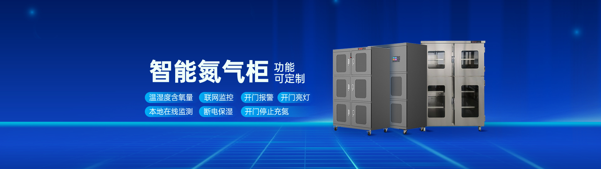 ?智能氮?dú)夤裰饕抢玫獨(dú)鈦?lái)降低濕度從而防止氧化的,除濕效果非常穩(wěn)定,柜體本身具有送氮和排氣的通路,通過(guò)氮?dú)獾某淙霛穸入S之降低